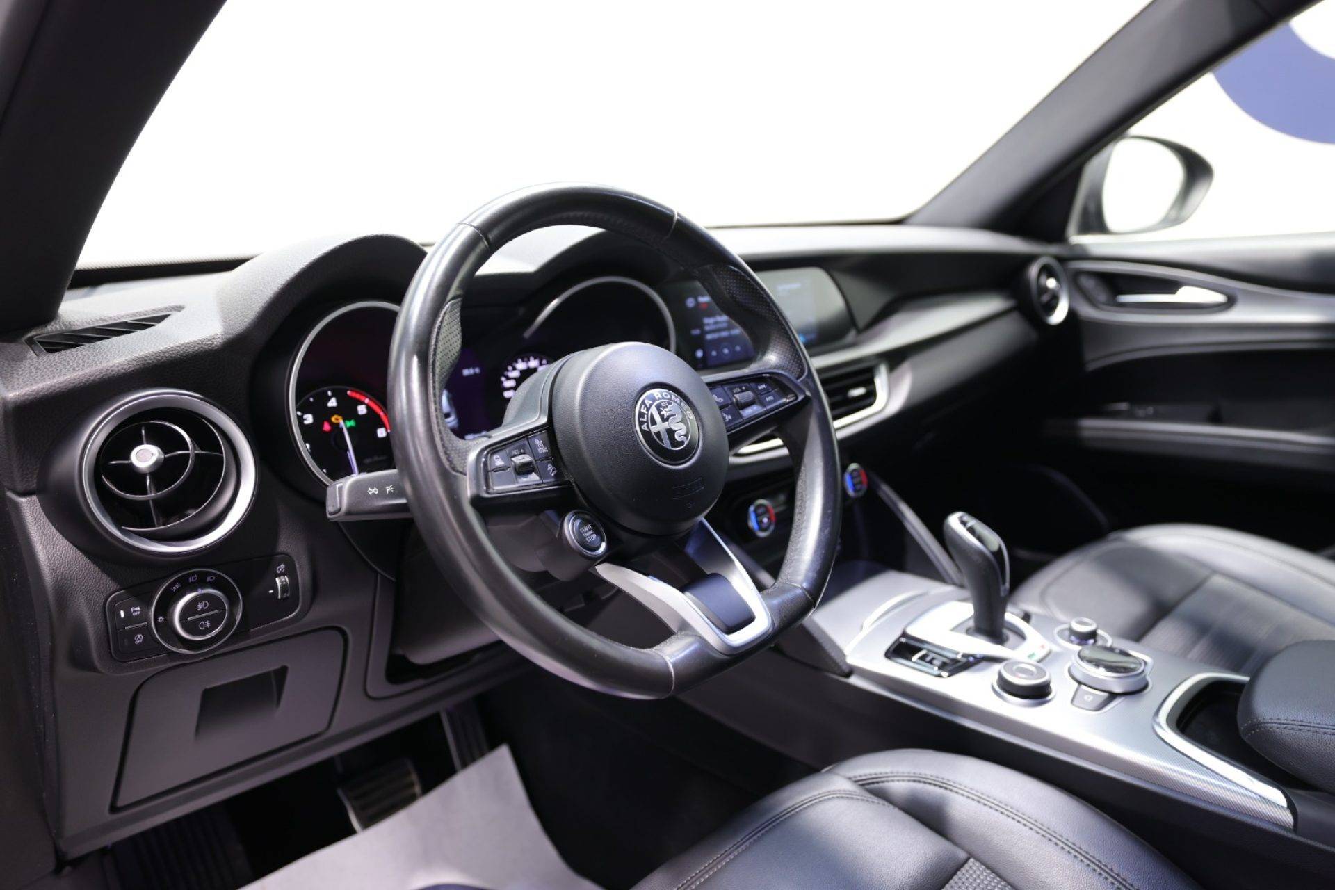 Alfa Romeo Stelvio 2.2 Turbodiesel 190 CV AT8 Q4 Sprint del 2022, un SUV che incarna perfettamente il DNA sportivo della casa italiana grazie alla trazione integrale Q4 e al cambio automatico a 8 rapporti con leve al volante per una guida dinamica e ... precisa. L'allestimento Sprint si distingue per il pacchetto sportivo e i raffinati interni in pelle, arricchiti da un volante in pelle multifunzione, bracciolo centrale e climatizzatore automatico bizona. La dotazione tecnologica è di altissimo livello, centrata sul sistema di navigazione integrato con touch screen, autoradio digitale, bluetooth, controllo vocale, vivavoce e ingressi USB per una connettività totale. La sicurezza è prioritaria e comprende Adaptive Cruise Control, Blind Spot Monitor per il controllo dell'angolo cieco, frenata d'emergenza assistita, sistema di avviso di distanza, controllo elettronico della corsia e chiamata d'emergenza, oltre a un set completo di airbag e monitoraggio pressione pneumatici. La visibilità ottimale è garantita dai fari Full-LED e Xenon con luci diurne e fendinebbia, supportati dai sensori di luce e pioggia. La praticità quotidiana è esaltata dal portellone posteriore elettrico, dal sistema Keyless per l'apertura e l'avviamento senza chiavi, dai sensori di parcheggio anteriori e posteriori con telecamera assistita, dal freno di stazionamento elettrico con Hill Holder e dai cerchi in lega dedicati. Completano il profilo di questa Stelvio lo Start/Stop automatico e gli specchietti regolabili elettricamente, offrendo un’esperienza di guida che unisce comfort premium, tecnologia avanzata e prestazioni d'eccellenza.