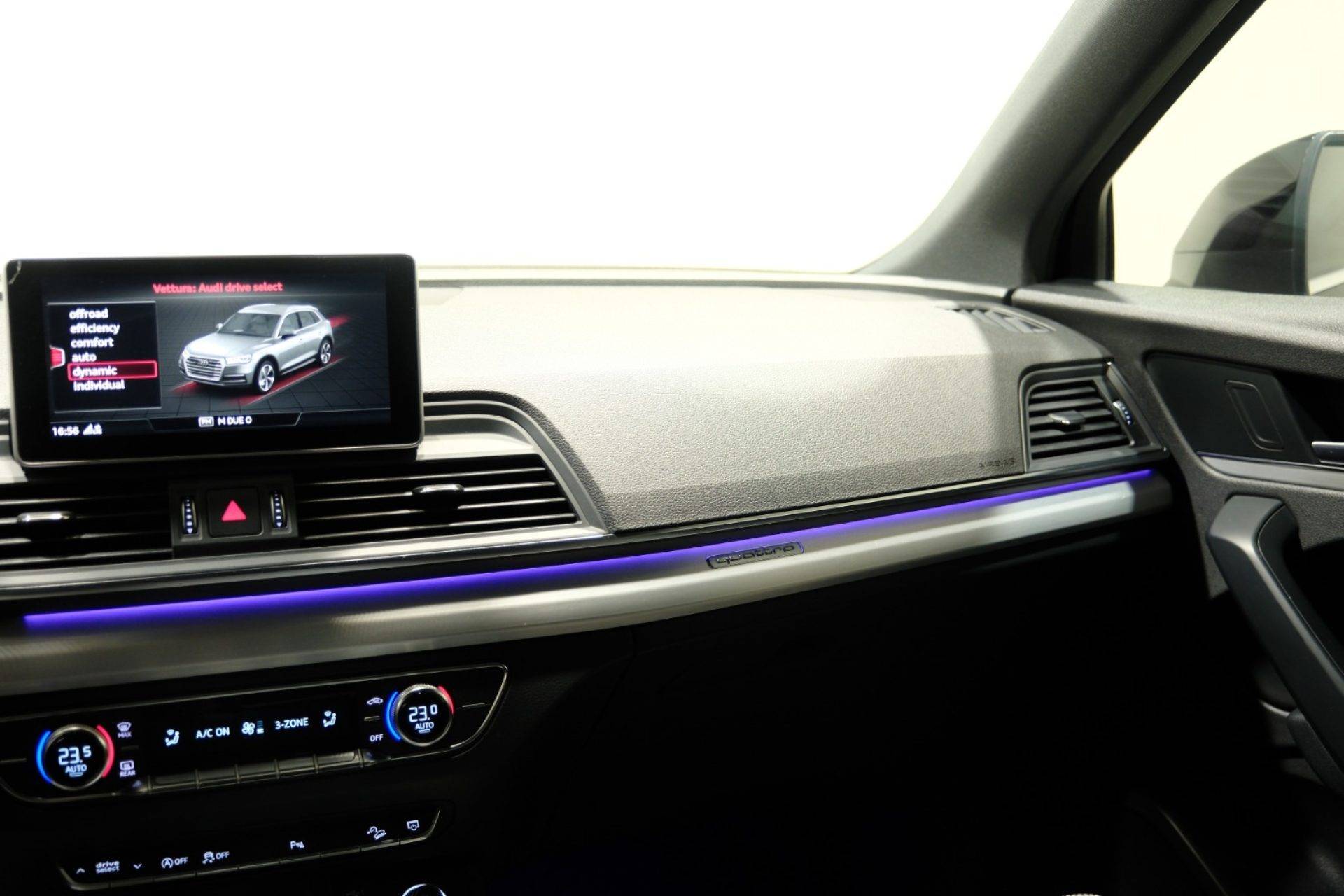 AUDI Q5 2.0 TDI 190 CV QUATTRO S TRONIC S LINE PLUS del 2018 rappresenta il perfetto equilibrio tra prestazioni, eleganza e tecnologia. Spinta dal motore 2.0 TDI da 190 CV abbinato alla trasmissione automatica S tronic e alla trazione integrale quatt ... ro, offre una guida fluida, sicura e sempre pronta in ogni condizione.L’allestimento S Line Plus esalta il carattere sportivo del SUV con cerchi in lega dedicati, interni in pelle, volante multifunzione in pelle e dettagli curati in ogni particolare. Il comfort a bordo è garantito dal climatizzatore automatico, dal sistema di infotainment con navigatore integrato, Bluetooth e sound system di alta qualità.La dotazione di sicurezza è completa: ABS, ESP, controllo di trazione, frenata d’emergenza assistita, airbag multipli, Isofix e monitoraggio pressione pneumatici. I sensori di parcheggio anteriori e posteriori, uniti ai fari full LED, assicurano visibilità e manovrabilità ottimali.Con trazione quattro, interni premium e tecnologia avanzata, l’AUDI Q5 S Line Plus è il SUV che unisce potenza, comfort e stile in una forma impeccabilmente tedesca.