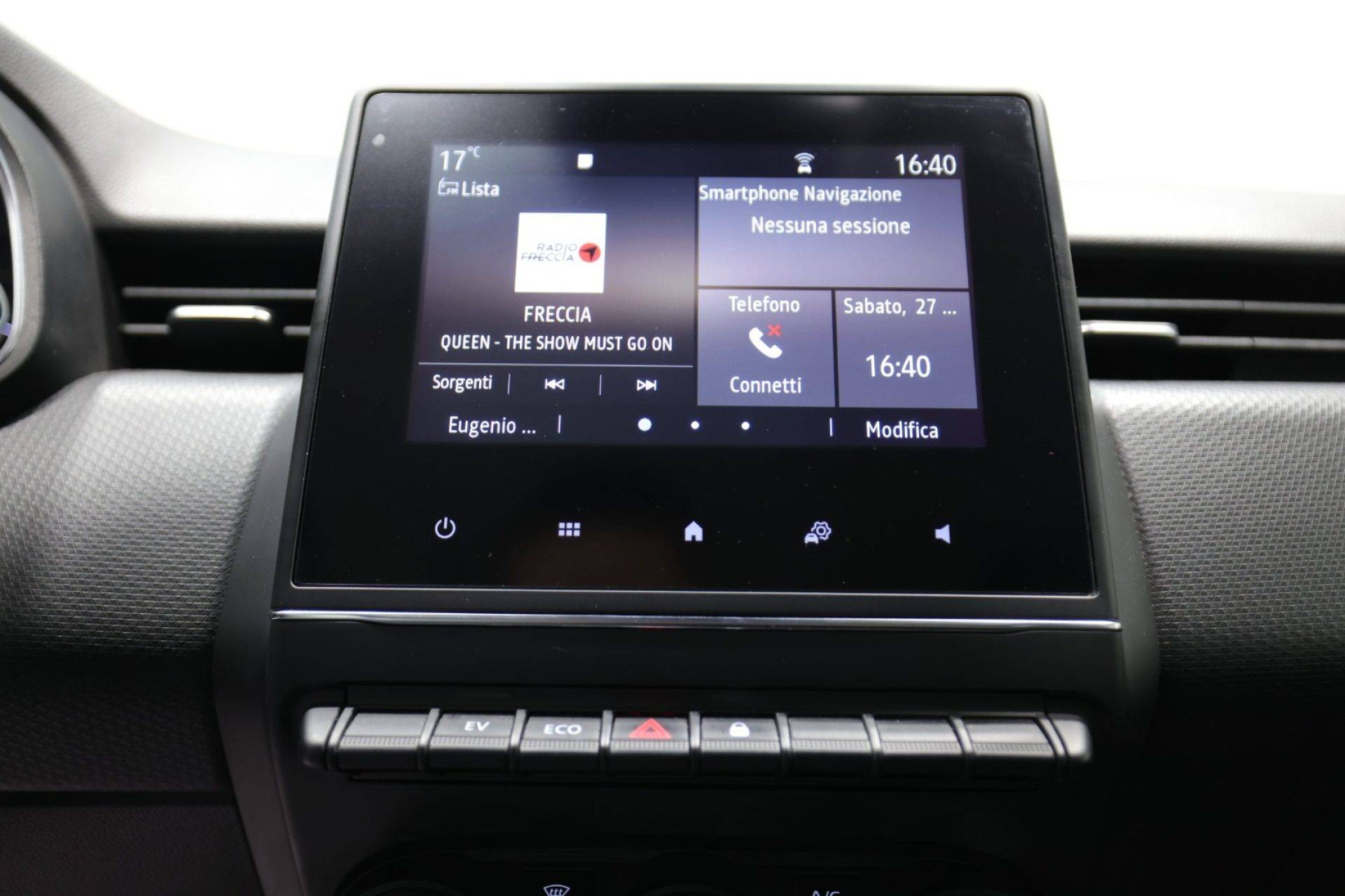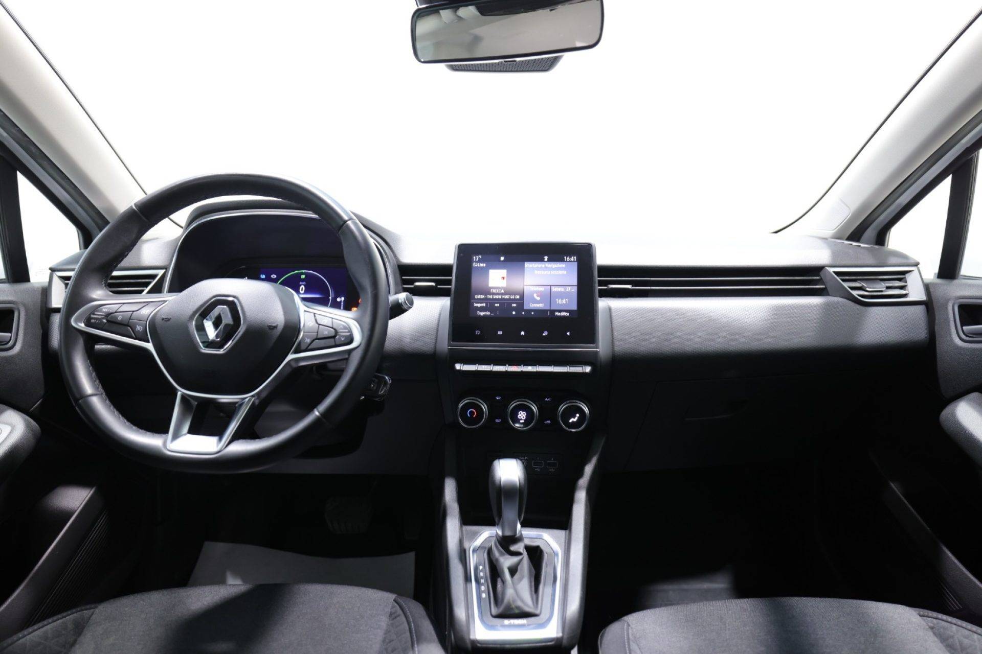Renault Clio Full Hybrid E-Tech 140 CV 5 porte Zen equipaggiata con ABS, airbag anteriori, laterali e per la testa per una protezione completa degli occupanti. La vettura dispone di alzacristalli elettrici, chiusura centralizzata con telecomando, imm ... obilizzatore elettronico e servosterzo. Gli interni includono climatizzatore automatico, volante in pelle multifunzione, boardcomputer e sistema Isofix per il fissaggio dei seggiolini. La dotazione tecnologica prevede autoradio digitale con touch screen, vivavoce bluetooth, connessione USB e sistema Start/Stop automatico per l'ottimizzazione dei consumi. Per quanto riguarda la sicurezza e l'assistenza alla guida, l'auto offre frenata d'emergenza assistita, controllo elettronico della corsia, riconoscimento dei segnali stradali, cruise control con limitatore di velocità, controllo trazione ed ESP. Completano l'allestimento i fari LED con luci diurne, i fendinebbia, i sensori di luce e pioggia per l'attivazione automatica dei servizi e gli specchietti laterali regolabili elettricamente. La vettura risulta inoltre idonea alla guida per neopatentati grazie alla sua configurazione ibrida specifica.