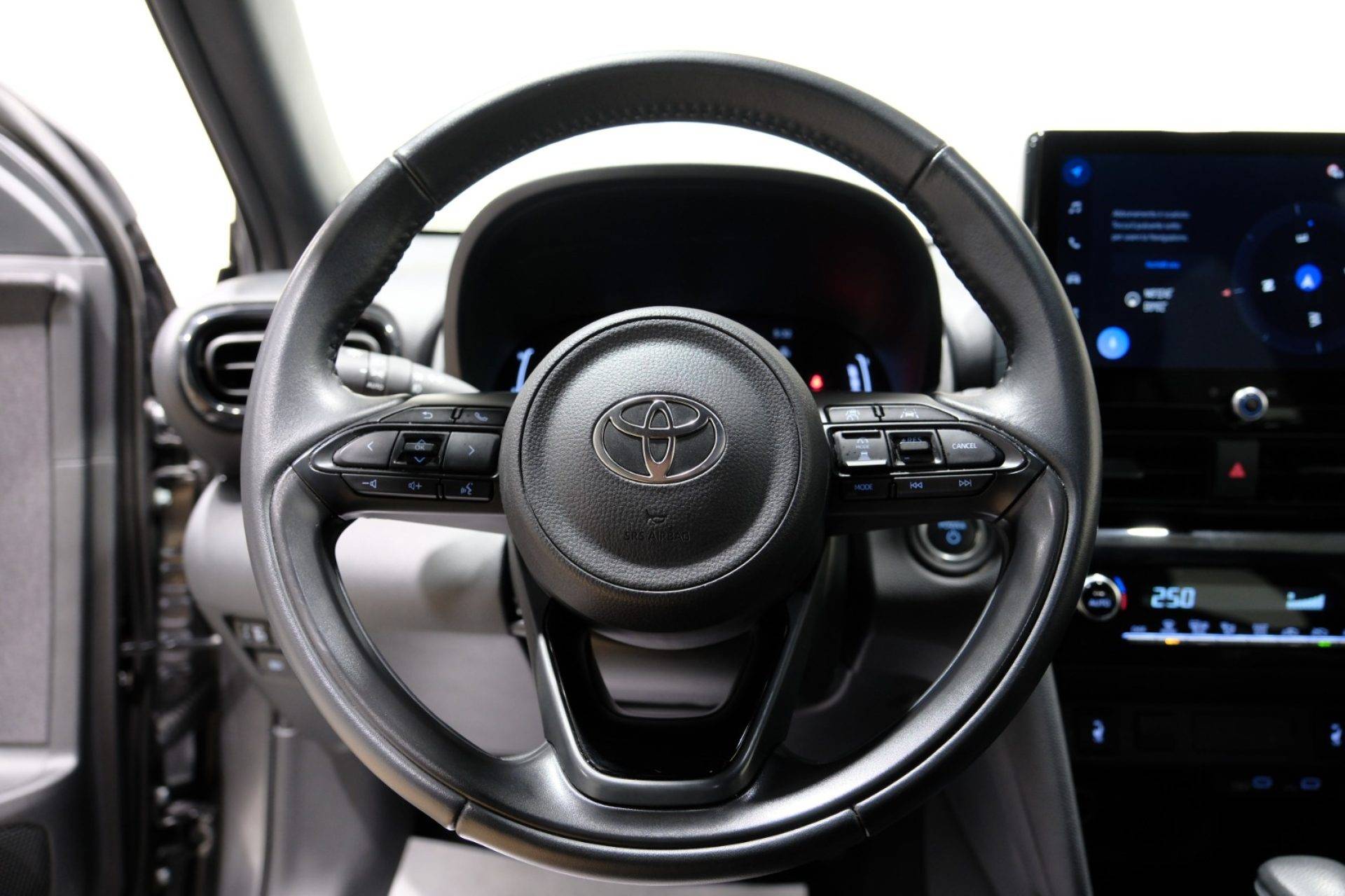 TOYOTA Yaris Cross 1.5 Hybrid 5PORTE E-CVT Trend è un SUV compatto che combina efficienza, sicurezza e tecnologia all’avanguardia, perfetto per chi cerca una guida sicura e confortevole in città e fuoriporta. Dotata di sistemi avanzati come ABS, ESP, ... controllo trazione, airbag multipli, Isofix e riconoscimento dei segnali stradali, garantisce protezione completa anche ai neopatentati.Gli interni, ergonomici e curati, includono volante multifunzione, bracciolo, touch screen, sistema audio con USB, Bluetooth e vivavoce, climatizzatore automatico e boardcomputer, offrendo comfort e connettività in ogni situazione. Il cruise control, il controllo elettronico della corsia e la telecamera per parcheggio assistito completano l’esperienza di guida.Esteticamente elegante con cerchi in lega, fari full-LED, fendinebbia, luci diurne e sensori di parcheggio anteriori e posteriori, la Yaris Cross Trend integra sensori di luce e pioggia, specchietti elettrici e Start/Stop automatico, unendo stile, praticità e sicurezza in ogni viaggio.