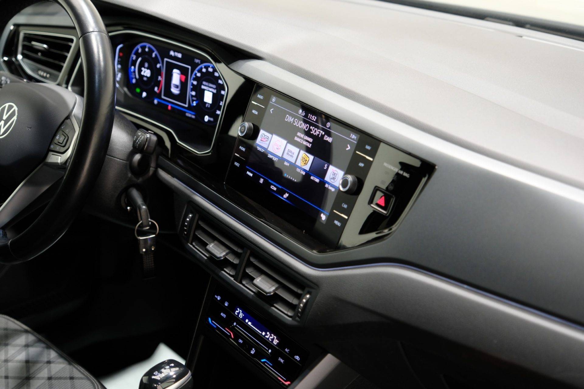 Volkswagen Taigo 1.0 TSI 110 CV DSG R-Line del 2021 è un crossover compatto dal design sportivo, arricchito dall’allestimento R-Line che ne esalta linee e dettagli. Il motore 1.0 TSI da 110 CV, abbinato al cambio automatico DSG e alle leve al volante ... , offre una guida brillante e fluida, adatta sia ai neopatentati sia a chi desidera un’auto moderna e scattante.L’abitacolo è curato e completo: climatizzatore automatico, bracciolo, volante multifunzione, touch screen con connettività Bluetooth, USB, autoradio digitale e comandi vocali. A bordo non mancano boardcomputer e tettuccio panoramico in cristallo, che aumenta luminosità e comfort durante la guida.La sicurezza è uno dei punti forti della Taigo, grazie a una dotazione molto ricca: ABS, ESP, controllo trazione, airbag multipli, Isofix, monitoraggio pressione pneumatici, frenata d’emergenza assistita, sistema di avviso distanza, chiamata d’emergenza, controllo elettronico della corsia, limitatore di velocità, cruise control e adaptive cruise control. Presenti anche sensori luce, luci diurne, fari full-LED e fendinebbia.Per le manovre quotidiane è equipaggiata con park distance control, sensori di parcheggio posteriori, specchietti laterali elettrici e freno di stazionamento elettrico. Completano l’allestimento cerchi in lega, chiusura centralizzata anche telecomandata e start/stop automatico.Una vettura stilosa, tecnologica e completa, perfetta per chi cerca praticità senza rinunciare a comfort e sportività.